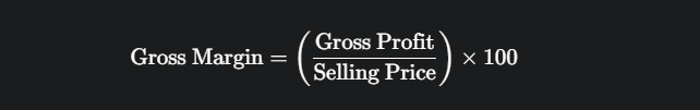 Margin shows the percentage of the selling price that becomes profit. The calculation is based on the Selling Price (the amount the customer pays).