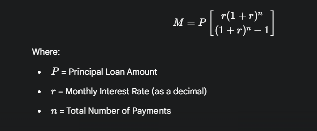 The calculator uses the standard Amortization Formula, which is designed to determine the equal periodic payments required to pay off both the principal and the interest on a loan over a set period.
